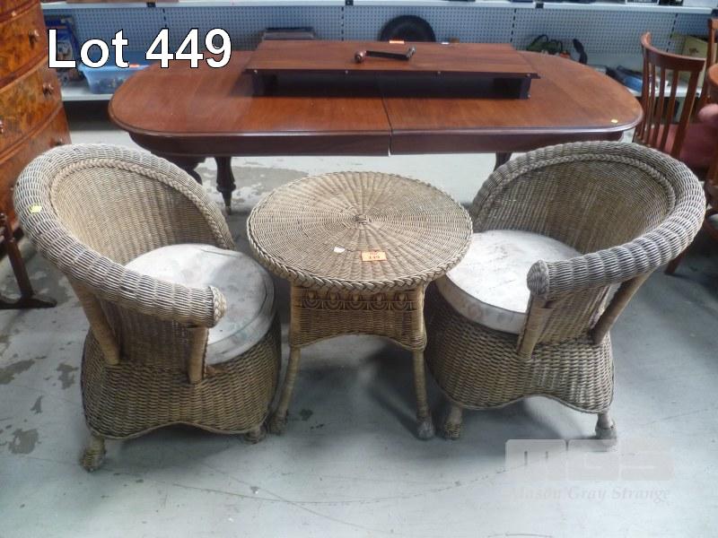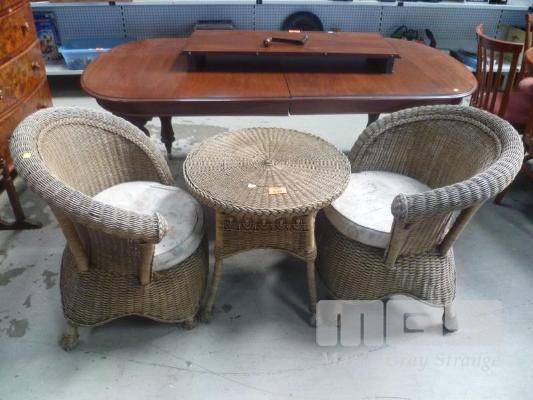 WICKER 3 PIECE PATIO SETTING INC ROUND TABLE & 2 x ARM CHAIRS