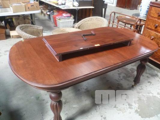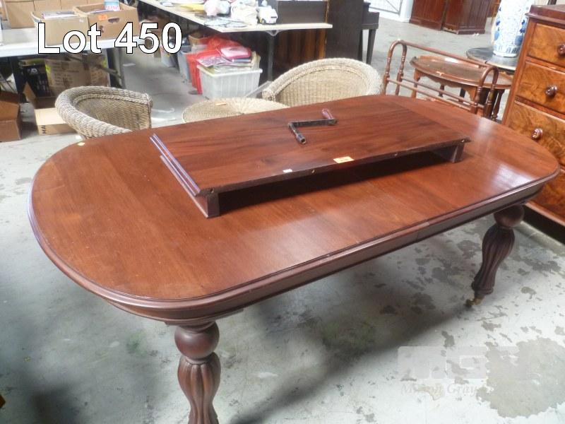 MAHOGANY OVAL EXTENSION DINING TABLE, BRASS CASTORS, SINGLE LEAF, CRANK HANDLE