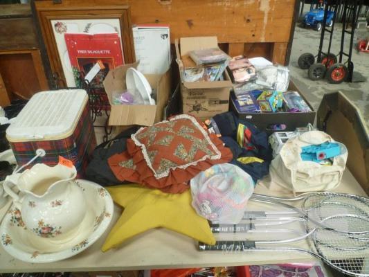 ASSORTED HOMEWARES, INC; JUG & BOWL SET, DVD's, TOYS, ETC (1 X TABLE)
