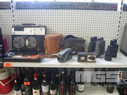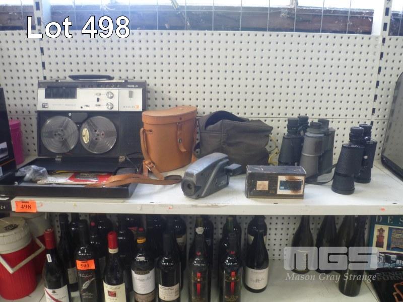 BINOCULARS, REEL TO REEL PLAYER & VIDEO CAMERAS