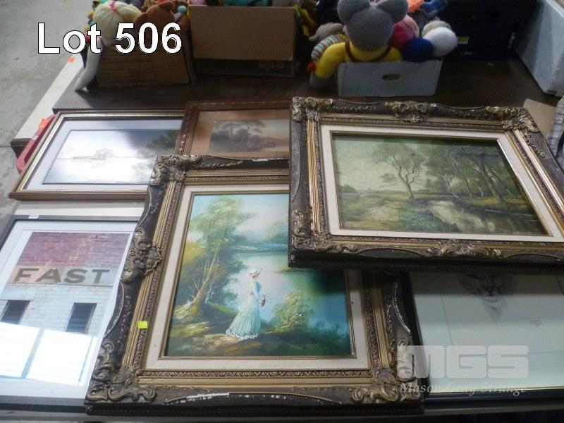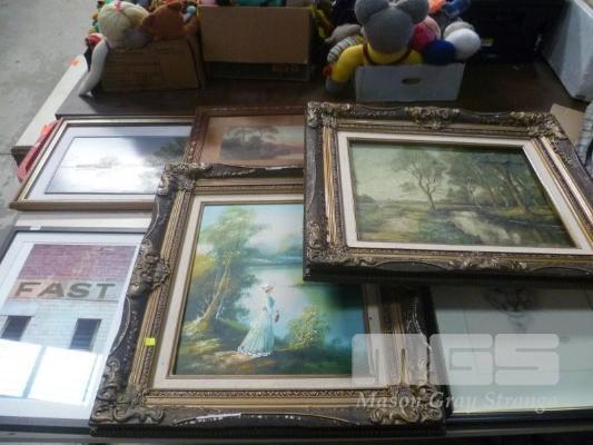 ASSORTED ORIGINAL PAINTINGS, 1 x TABLE