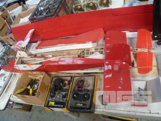 REMOTE CONTROL PLANES, PLANE PARTS, PETROL MOTORS, 2 x CONTROLLERS