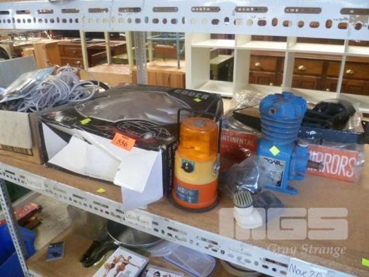 14" WHEEL COVERS, "SWAN" AIR COMPRESSOR CYLINDER, VEHICULAR SIDE MIRRORS ETC