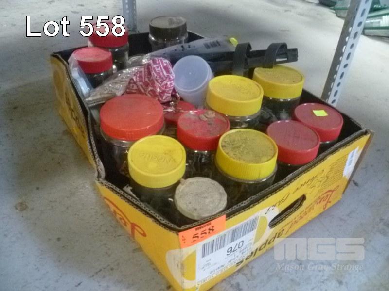 COLLECTION OF ASSORTED SCREWS, FIXINGS, HOOKS, NAILS IN JARS. MOUSE TRAPS ETC