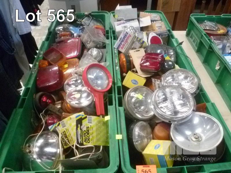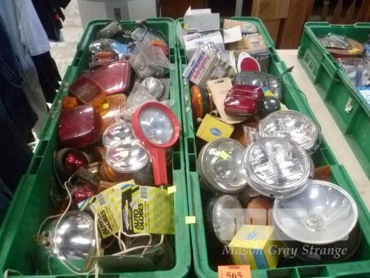 2 x TUBS OF ASSORTED VEHICULAR ELECTRICAL COMPONENTS MOSTLY HEADLAMPS TAIL LIGHTS ETC (TUBS NOT INCLUDED)