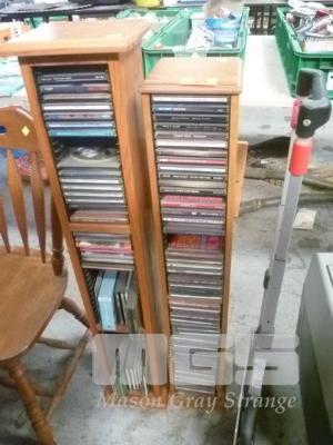 2 x CD TOWERS WITH ASSORTED CD'S & FOLD UP SACK TRUCK