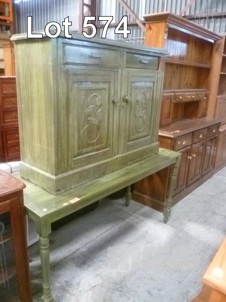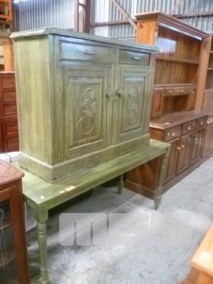 DISTRESSED GREEN PAINTED SIDEBOARD & RECTANGULAR TABLE