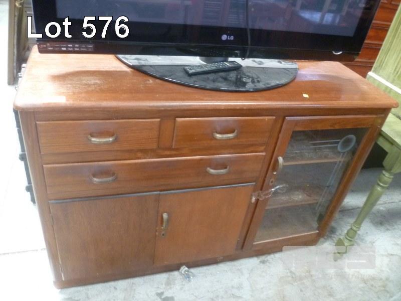 TIMBER ART DECO SIDEBOARD, ETCHED GLAZED DOOR, 3 DRAWER, 2 DOOR