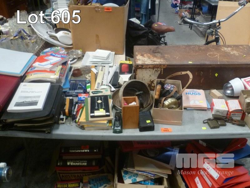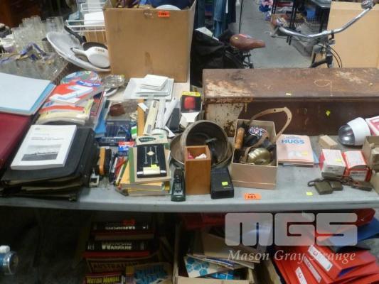 ASSORTED COLLECTIBLES INCLUDING DRAFTING TOOLS, VINTAGE INSTRUCTION MANUALS, STEEL BOX, LOCKS, VINTAGE WALL PHONE, TELEDEX ETC