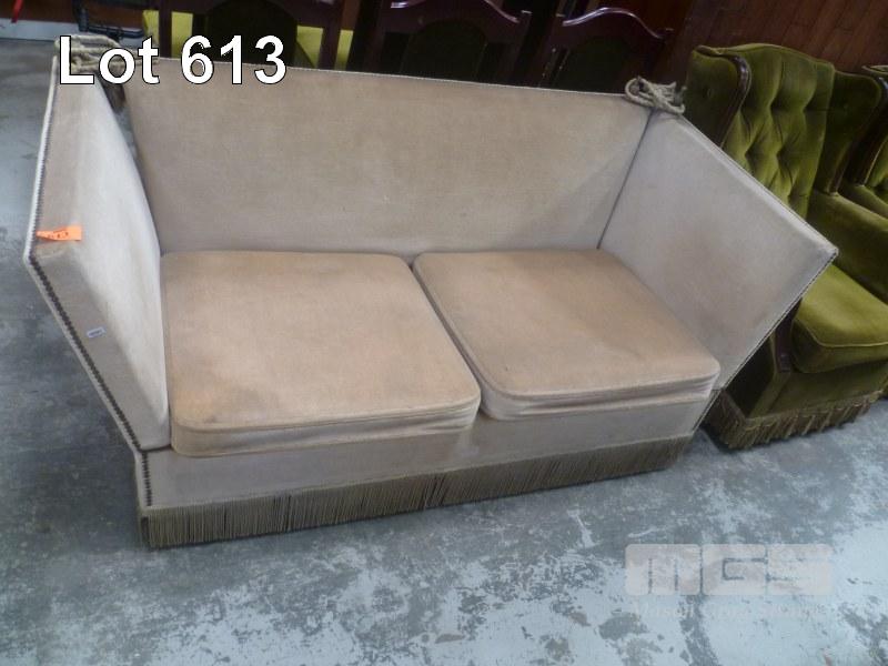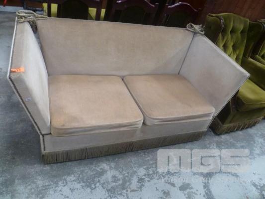 BEIGE FABRIC 2 SEATER LOUNGE WITH FOLD DOWN ARMS