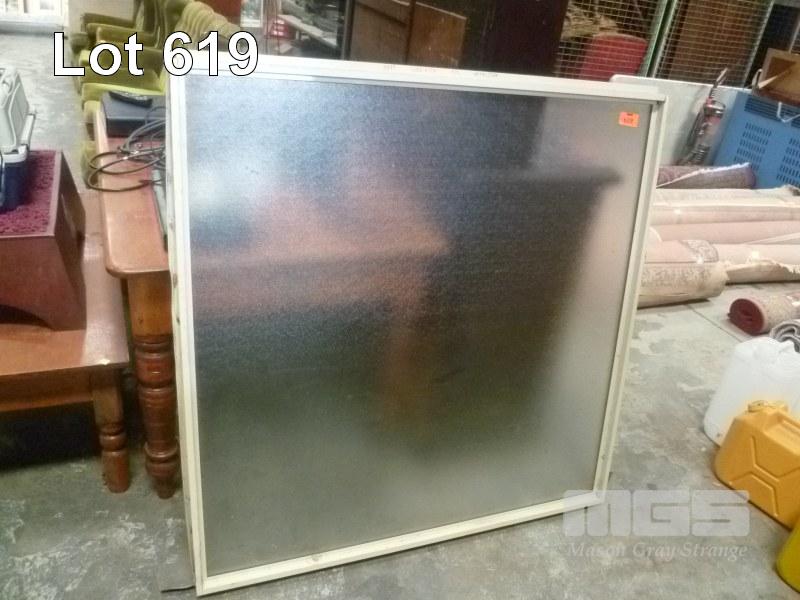 FROSTED GLASS WINDOW IN ALUMINIUM FRAME. 1200 x 1210mm
