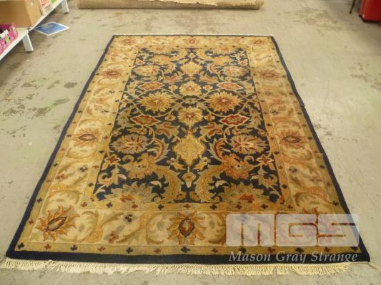 BLUE/BEIGE PATTERNED WOOL FLOOR RUG, 273 x 183cm