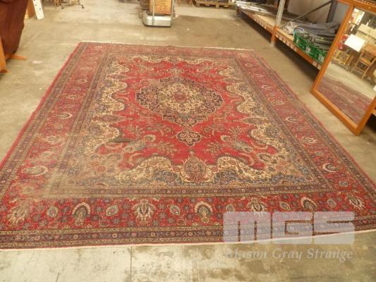 RED/BLUE/BEIGE HAND MADE PERSIAN FLOOR RUG, 4.1 x 3m, (WEAR MARKS)