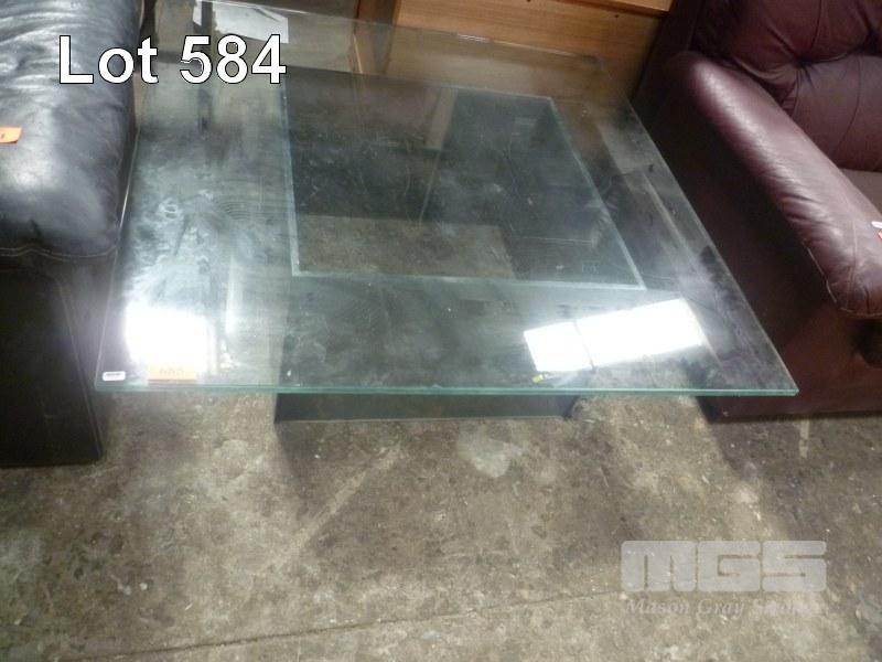 SQUARE 2 PIECE, GLASS TOP COFFEE TABLE, 106 x 106cm WITH PLASTIC BASE