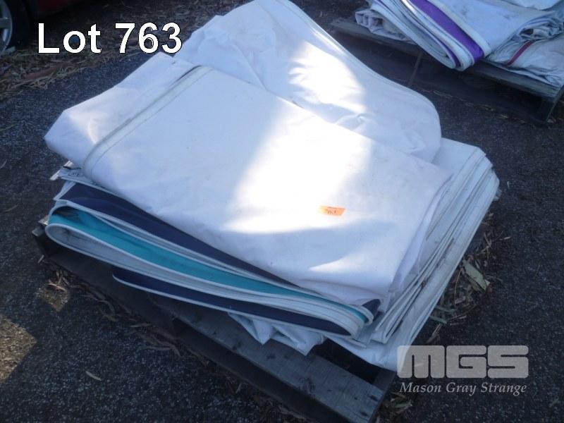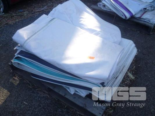 5 X HEAVY DUTY ADVERTISING TARPS, ASSORTED SIZES