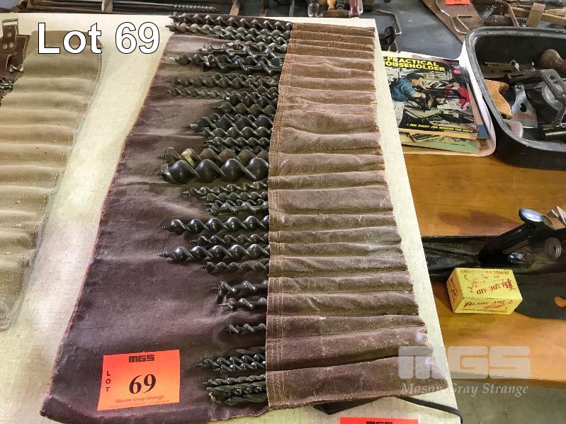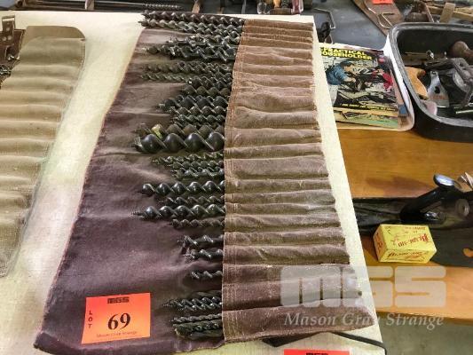 38 x (APPROX) VINTAGE LS DRILL BITS, IN LEATHER BAG