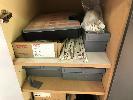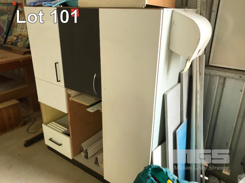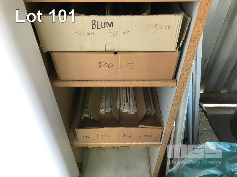 LAMINATE TIMBER CABINET & CONTENTS ASSORTED DRAWER RUNNERS
