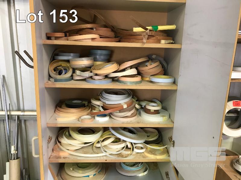 LAMINATE WORKSHOP CABINET & CONTENTS ASSORTED ROLLS PRE-GLUED EDGE BANDING MATERIAL
