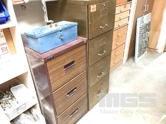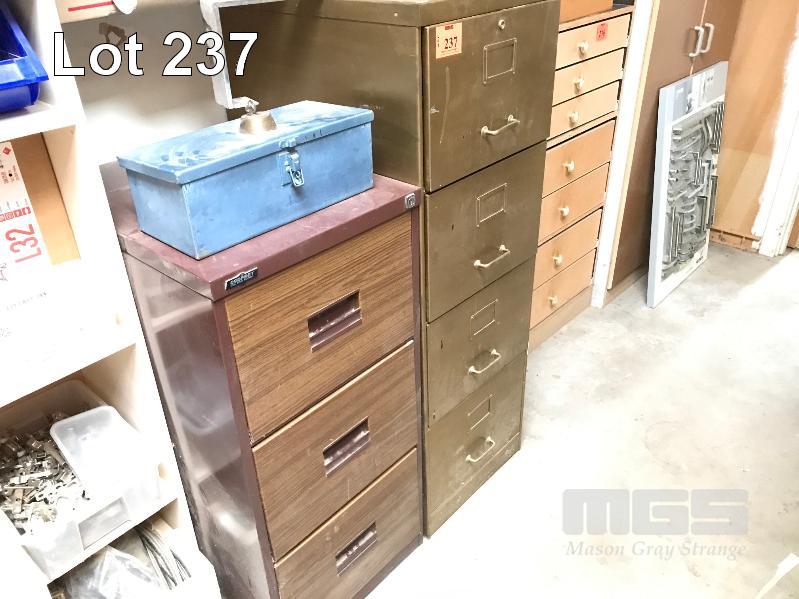 2 x STEEL FILING CABINETS, 3 & 4 DRAWER, STEEL LOCKBOX
