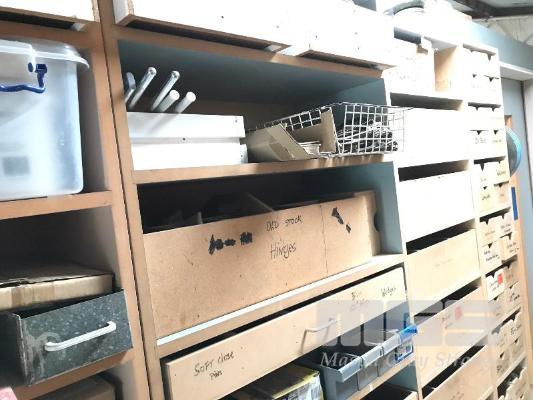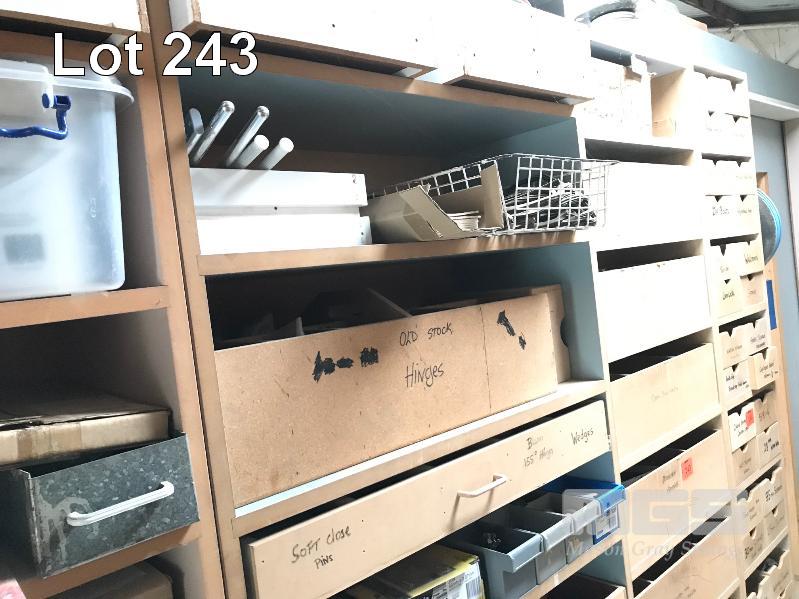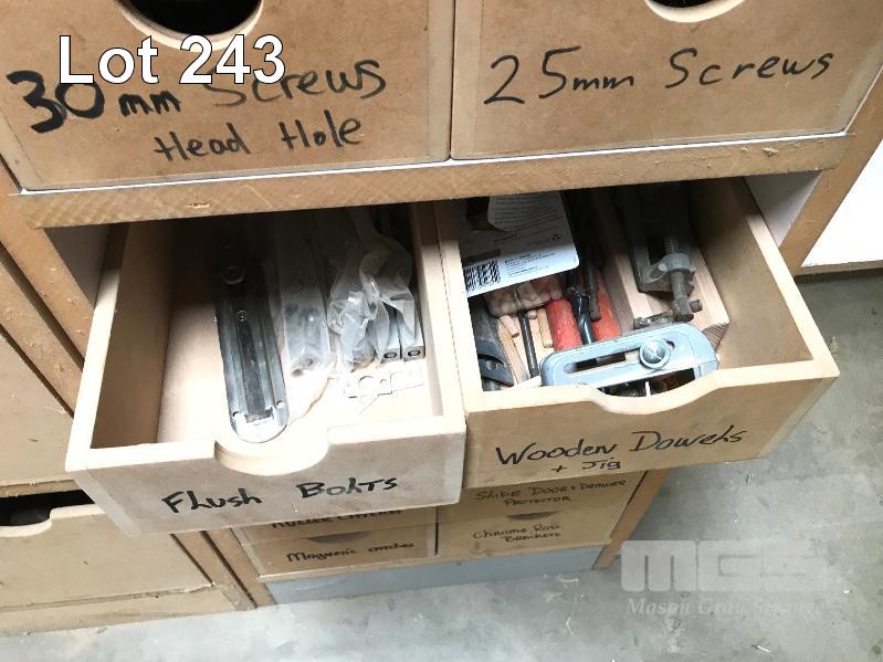 ASSORTED FURNITURE HANDLES, WHEELS, GRINDING DISCS ETC