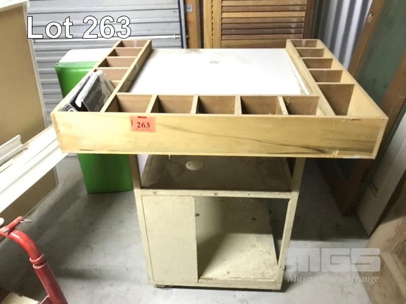STEEL FRAMED MOBILE WORKSHOP TROLLEY WITH SMALL PARTS TOP