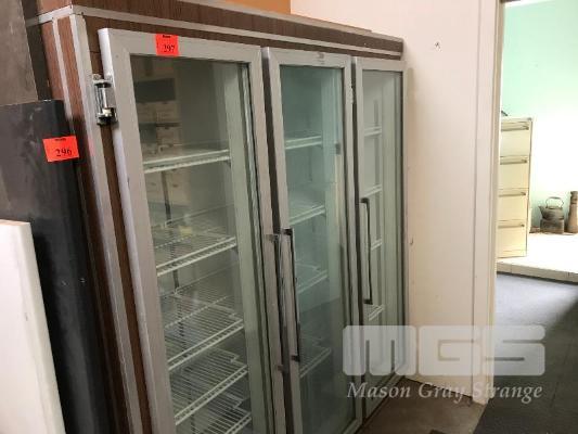 UPRIGHT REFRIGERATOR, 3 x GALS DOORS, (NO REFRIGERATION UNIT)