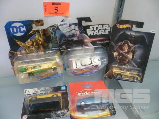 6 x HOT WHEELS DIECAST CARS INC STAR WARS, DC WONDER WOMEN, ETC