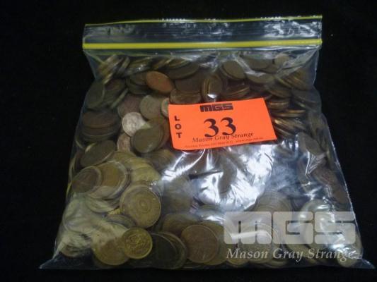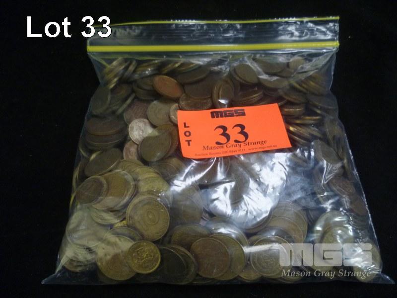 ASSORTED BRASS WORLD COINS, 2kg BAG