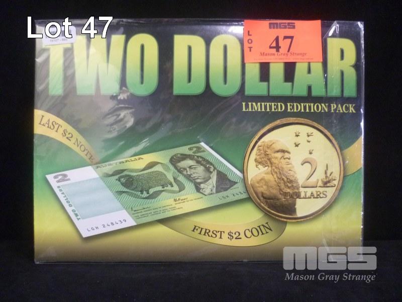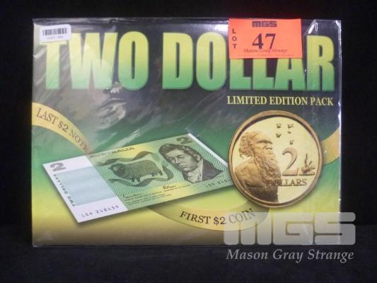 1985 LAST $2 NOTE & 1ST $2 COIN SET IN FOLDER