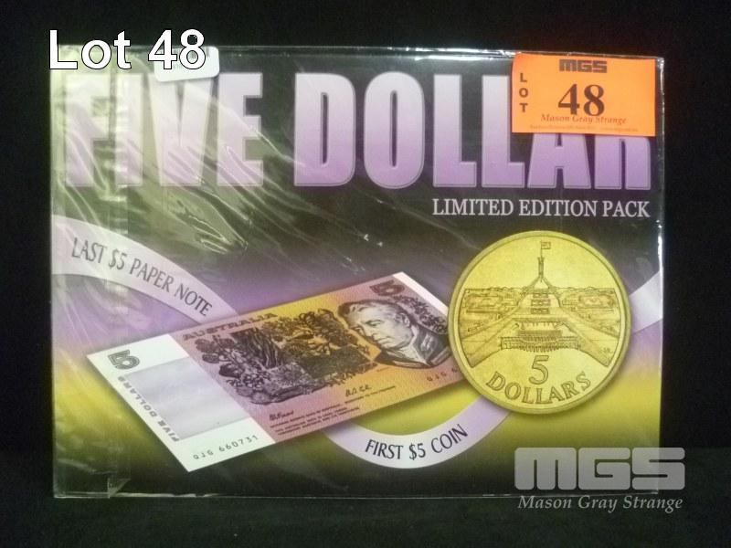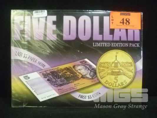 1991 LAST $5 NOTE & 1ST $5 COIN SET IN FOLDER