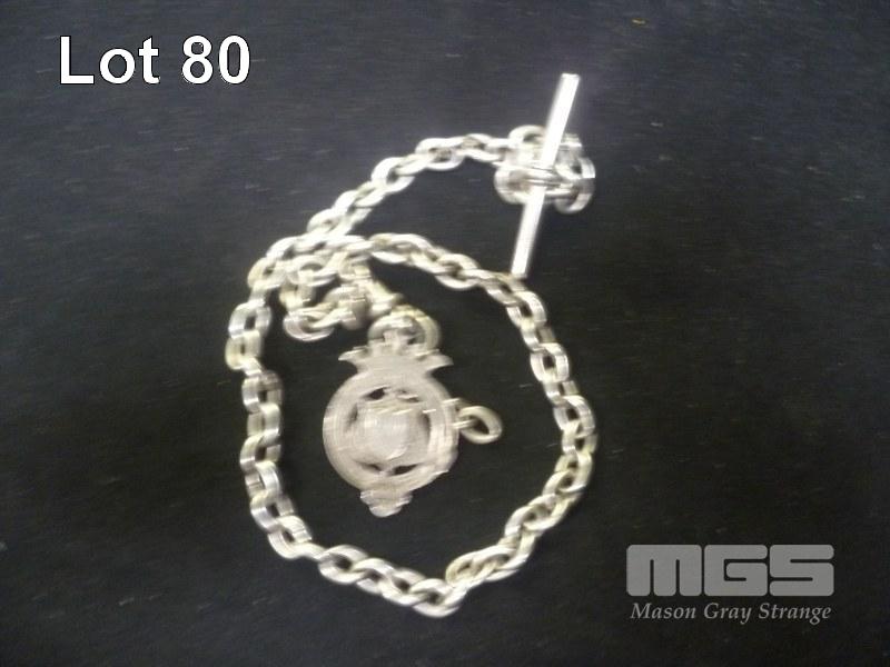 SILVER FOB CHAIN, HALLMARKED WITH SILVER PENDANT, ST WINIFRED'S SPORTS "THE TUG OF WAR" 1909 HALLMARKED, TOTAL WEIGHT 44.6 GRAMS