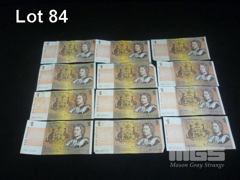 12 X AUSTRALIAN PAPER 1 DOLLAR NOTES INC