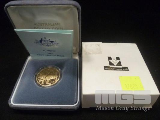 AUSTRALIA, 1984 $1 PROOF COIN, FIRST YEAR OF ISSUE, IN CASE