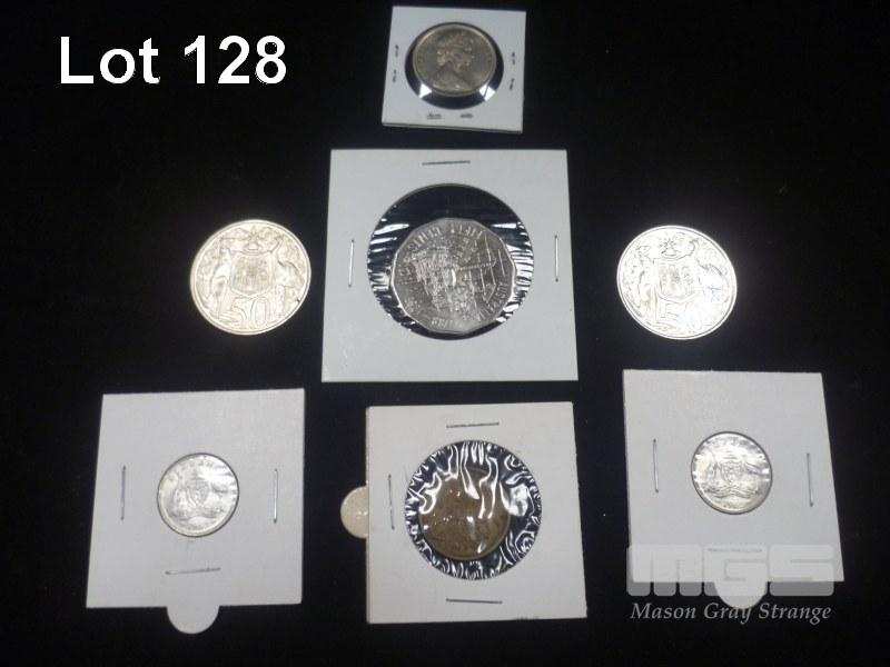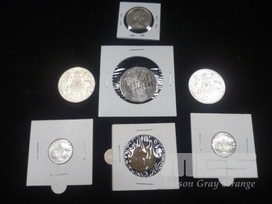 7 X COINS INC 6 X AUSTRALIAN 2 X 1966 ROUND 50 CENT PIECES, NEAR UNC 2 X 1962 SIXPENCE, NEAR UNC 1988 COMMEMORATIVE FIRST FLEET 50 CENT PIECE, NEAR UNC 1966 10 CENT PIECE, NEAR UNC & 1837 TO HANOVER COIN
