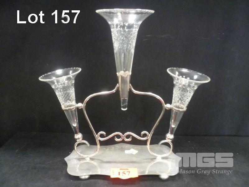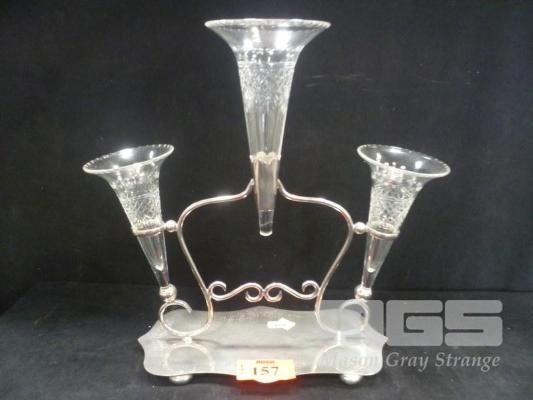 SILVER PLATED EPERGNE WITH 3 x CRYSTAL INSERTS