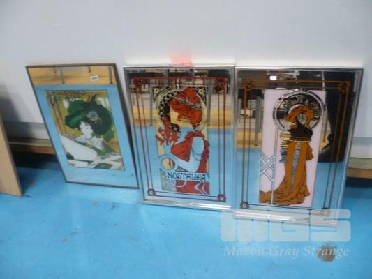 3 x ART NOUVEAU TYPE WALL MIRRORS, 45 x 31cm