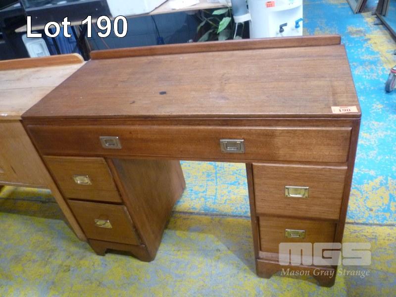 OAK TWIN PEDESTAL 5 DRAWER OFFICE DESK