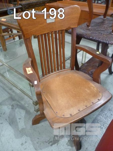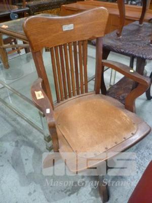VINTAGE TIMBER SWIVEL ARM CHAIR, STERLING SILVER PLAQUE, "NORTH GLENELG COMMUNITY CENTRE"