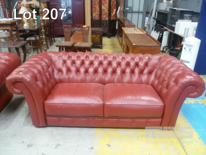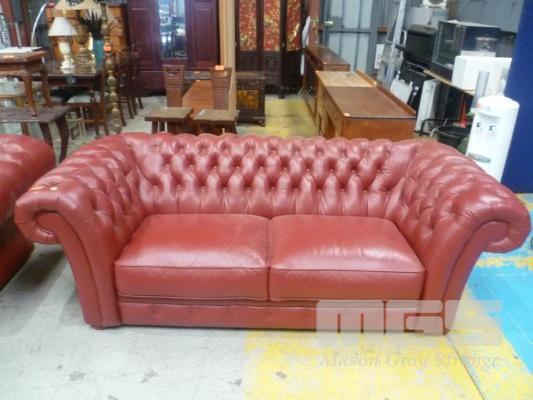BURGANDY LEATHER CHESTERFIELD STYLE LOUNGE, DEEP BUTTON, 3 SEATER