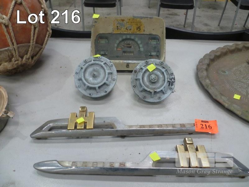 PAIR OF INTERNATIONAL SERIES TRUCK QUARTER PANEL BADGES, CLUSTER & 2 X HORNS