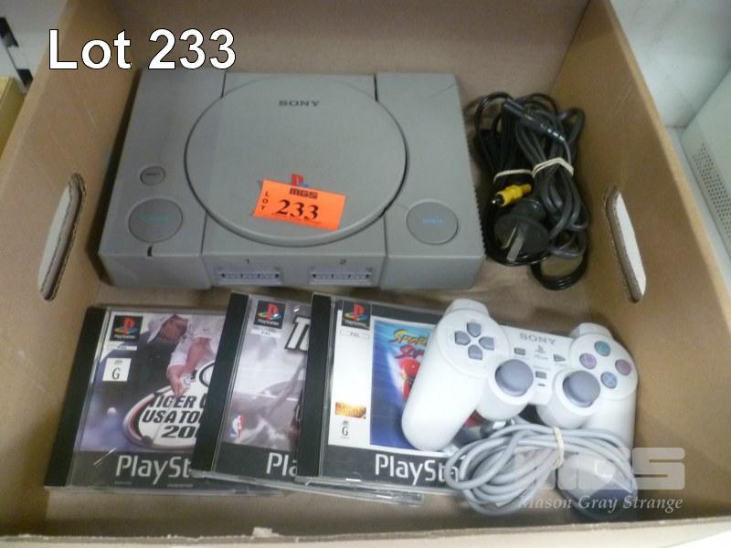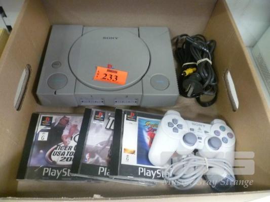 PS1 GAMING CONSOLE, CABLE, CONTROLLER & GAMES