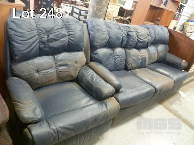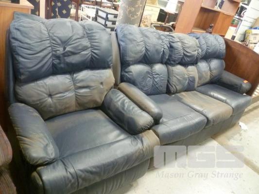 BLUE LEATHER LOUNGE SUITE COMPRISING 3 SEATER SOFA & RECLINER ARMCHAIR