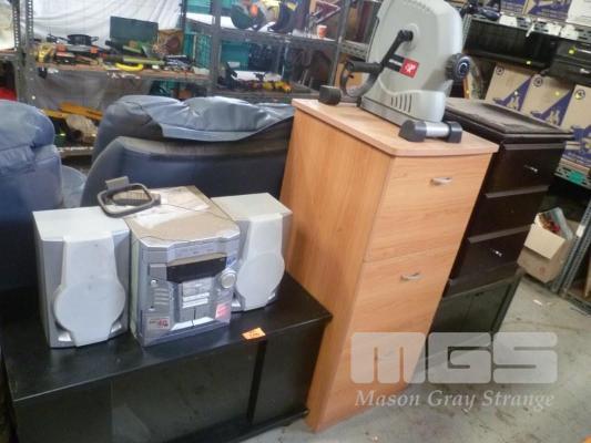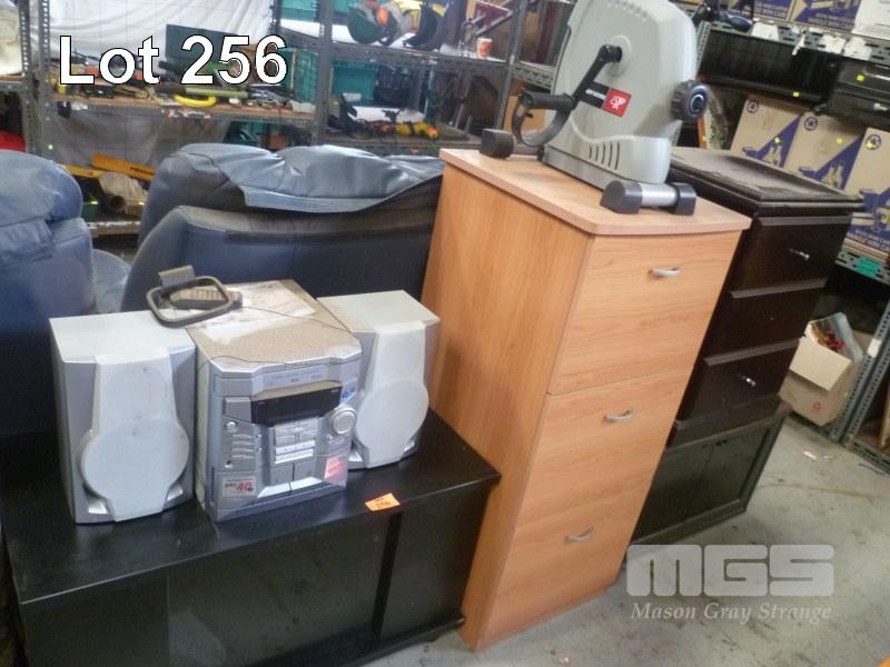 SHARP 3 DISC STEREO WITH MP3, 2 X ENTERTAINMENT UNITS, BEDSIDE CABINETS, 3 DRAWER FILING CABINET