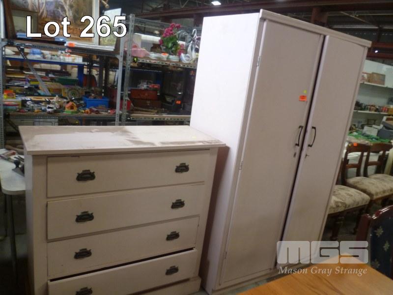 BEIGE PAINTED TALLBOY & MATCHING WARDROBE