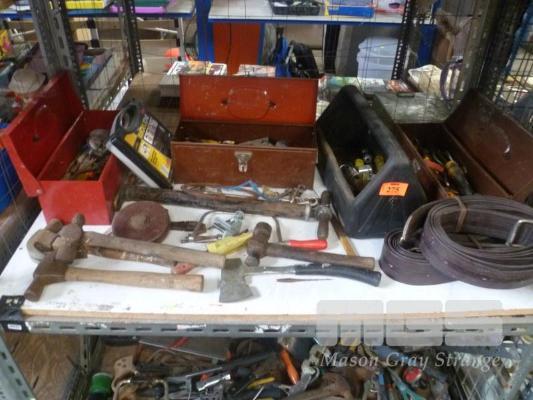 4 x TOOL BOXES & CONTENTS HAND TOOLS INC HATCHET, HAMMERS, SOCKETS,SPANNERS, PLIERS, SCREWDRIVERS, ETC