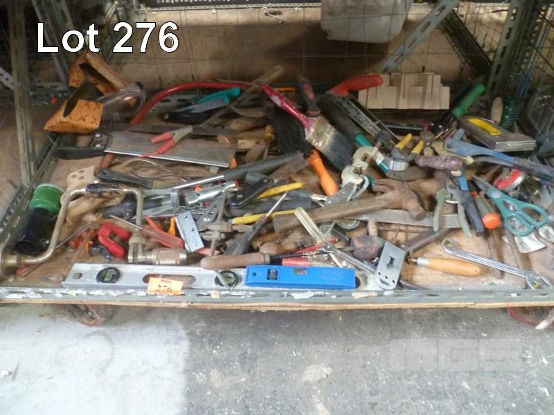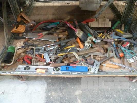ASSORTED WORKSHOP TOOLS INC HAMMERS, LEVELS, HAND DRILLS, PLIERS, SPANNERS, ETC