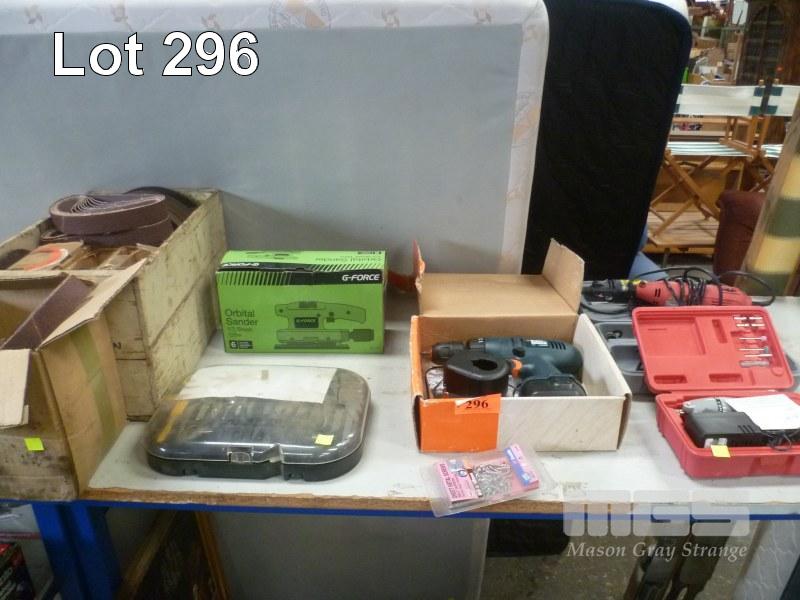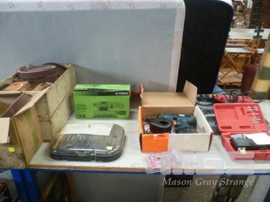 ORBITAL SANDER, 3 X ROTARY TOOLS, SANDING BELTS ETC