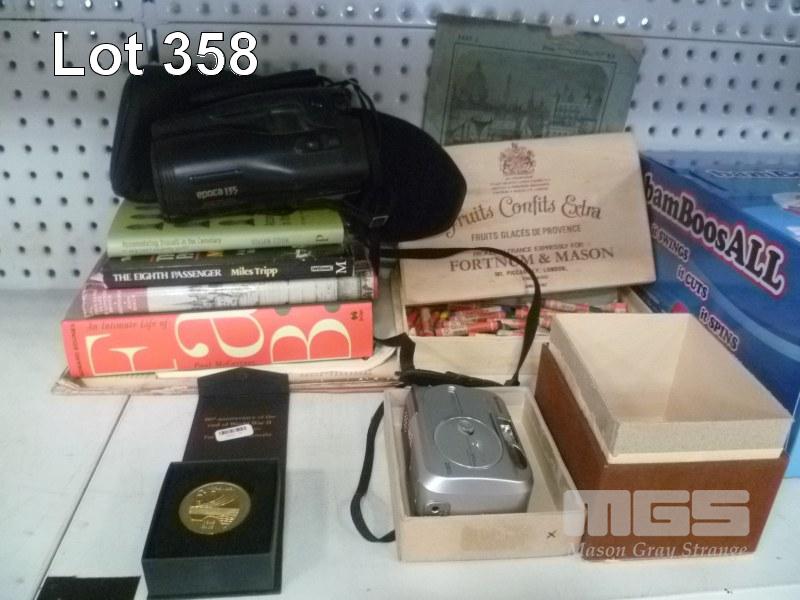 CANON EPOCA 135 CAMERA, FUJI FILM FINE PIX CAMERA 60th ANNIVERSARY OF THE END OF WORLD WAR 2 SERVICE MEDAL BOOKS, ETC.