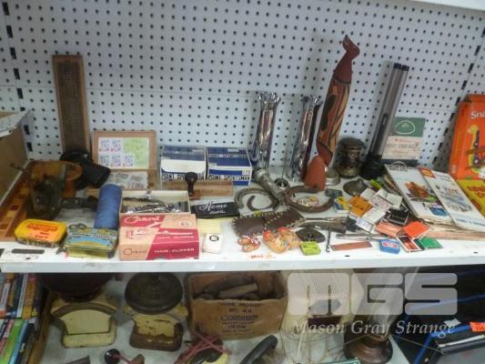 ASSORTED COLLECTABLES INC MAPS, TINS, FISHING REELS, STAMPS, ETC