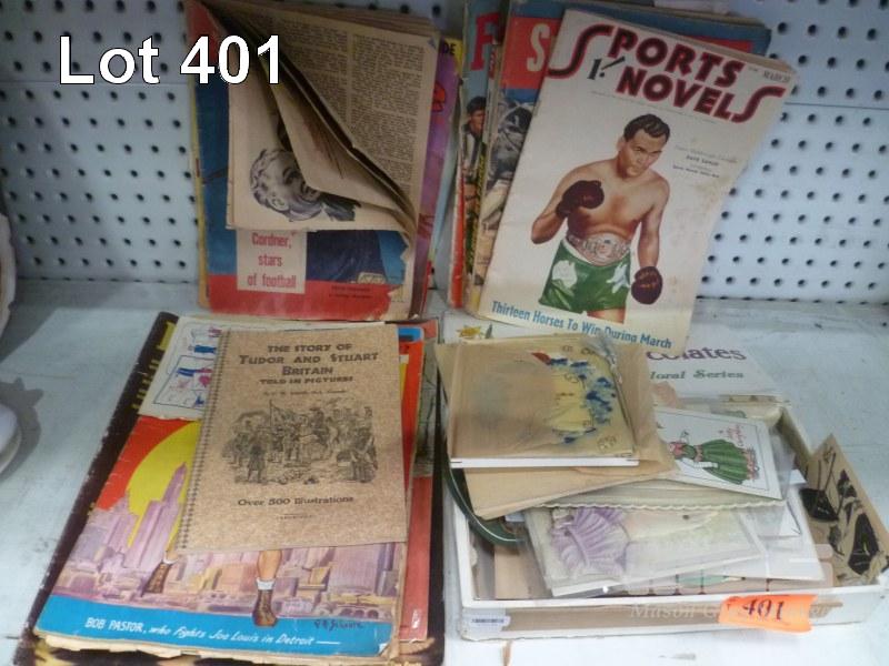 EPHEMERA LOT INC MILITARY, GREETING & POSTCARDS, MAGAZINES, SPORTING, ETC